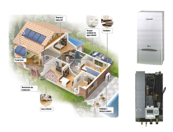 La solución para la nueva vivienda y renovación: THERMA V fue pensado especialmente para responder a las necesidades de renovación del mercado (para aliviar o reemplazar una caldera) y las nuevas viviendas del mercado. El producto se adapta perfectamente a aplicaciones individuales residenciales, cómo también a colectivas. Por otra parte, este sistema de bomba decalor (aireagua) compone un producto ecológicamente amigable que utiliza dos recursos de energía renovable, el aire y el sol. Finalmente, este sistema logra un coeficiente de rendimiento (COP) de mas de 4.5, es decir, por encima del más avanzado del mercado.